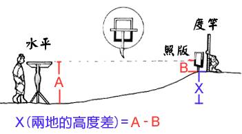 水平、照版和度竿是如何测量相对高低的?一般而言,先将照版和度竿置于待测地点,用白绳测量待测地点和水平的距离,然后使照版上黑白相交的部分和水平的视觉延长线重合,再利用水平的高度减去度竿测量照版黑白相交线与地表的距离,此即为两地实际相差的高度。