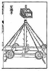 公尺)的木料,若取材困难时也可以用多木接合的方式达到此一强度,和前面所提到的望楼一样,望楼车的固定方式也是由绳索固定于地面,所不同的是,因为高度的不同,望楼车所采用的固定绳较望楼少但一样是三层,绳索的长度也短的多,分别是七十尺(21.91公尺)、五十尺(15.65公尺)和四十尺(12.52公尺)。