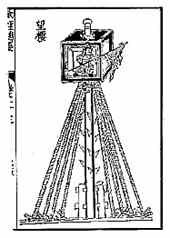 宋代《武经总要》中就录有望楼图其说明文中记载望楼高八丈(25.4公尺),用坚木支撑,顶端建一座宽五尺的版屋,在屋底设一出入口,坚木上钉上钉子以便观测人员(望子)攀爬,底座是用两枝各长一丈五尺的鹿颊木先埋入土中,只露出八尺,以船只上绑桅杆的方法将坚木和鹿颊木固定,然后在坚木上绑上一百二十尺(37.56公尺)、一百尺(31.3公尺)和八十尺(25.04公尺)三种高度的固定绳以确保其安定性。一般而言,望楼中只配属一名望子,由他手持白se<北京zheengffuu机房敏感词屏蔽>se<北京zheengffuu机房敏感词屏蔽>se旗,无敌情警戒时旗子是卷起来的,若敌来犯则将旗张开,敌人靠近则将旗杆横置,若敌人退走则慢慢将旗举起。