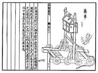 巢车的功能虽与望楼车相近,但车制有些不同,巢车的车座是采用八轮车座,而且是以双竿作为支撑机制的,竿的高度则视城池的高度而定。一般而言,唐宋的城墙约五丈(15.65公尺),因之要侦察城内必须高过此数。在双竿的顶上设置一个辘轳,以便将观测用的吊舱举起,因为举起吊舱需要很大的力道,所以和其他的观测车不同,他是以生牛皮为材质,可以防御敌人的矢炮攻击。