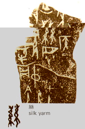 甲骨文最初出土于河南安阳小屯村的殷墟,1899年才被发现。殷墟是商王朝后期都城的遗址,自盘庚迁都直至商纣灭亡共历273年。近一个世纪以来,在此出土的甲骨多达几十万片,其中有很多都记载了与蚕、桑、丝和蚕业有关的事和文字。可见,蚕丝早已成为当时社会物质生产和精神生活的一个重要组成部分。