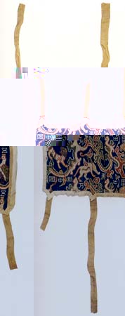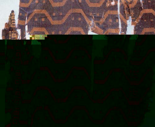 首先是这块织锦的图案十分奇特。它采用山状云作为骨架,如波浪纹,沿织锦纬向由右向至左连续铺展,其间依次穿插鸟、独角兽、虎,并伴有铭文,在铭文旁还有两个圆点纹,代表五星中的两颗星。整个图案不分se<北京zheengffuu机房敏感词屏蔽>se<北京zheengffuu机房敏感词屏蔽>se区,均用蓝、绿、红、黄、白五se<北京zheengffuu机房敏感词屏蔽>se<北京zheengffuu机房敏感词屏蔽>se织出,五星的图案恰好由这五种se<北京zheengffuu机房敏感词屏蔽>se<北京zheengffuu机房敏感词屏蔽>se彩表示。同墓所出的另一片残片上有云气纹、羽人纹、星纹和“诛南羌”三字铬文。经专家拼合复原,确认为同一织物。其次,两处铭文连在一起,与《汉书》的一处记载相一致:汉宣帝时,赵充国率兵攻打西羌(羌是中国西部古老民族之一),临行前星占家占卜,认为五星(金、木、水、火、土)将聚于东方天空,这是若干年才能一见的现象,说明此次军事行动将有利于中原。于是,宣帝赐书“今五星出东方,中国大利,蛮夷大败。”此锦可能是墓主帮助中原王朝打败南羌所得的一种赏赐,因此,也可以推断,这块锦是由中原地区织造,而非当地产品。