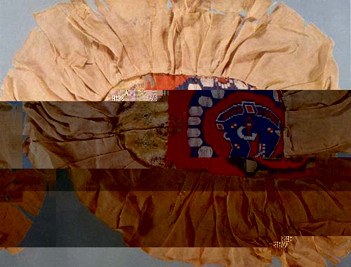 吐鲁番出土的织锦有相当一部分用于覆盖死者的脸部,称为“覆面”。这件盛唐时期的联珠猪头纹锦覆面就是典型的斜纹纬锦,se<北京zheengffuu机房敏感词屏蔽>se<北京zheengffuu机房敏感词屏蔽>se彩明快活泼,猪头上翘起的獠牙与几何形的眼睛极富装饰性。这种野猪头的形象来自中亚萨珊波斯艺术。猪在崇尚武功的波斯拜火教中被视为伟力拉格那神的化身,备受尊敬。野猪头纹出现于中亚的时期,先于七世纪中叶的伊斯兰化,因此,在中国发现的此类文物,也大体集中在这一时期。随着伊斯兰教在中亚的传播,这种以伊斯兰教中被视为不洁之物的猪为纹样的织锦图案逐渐消失。