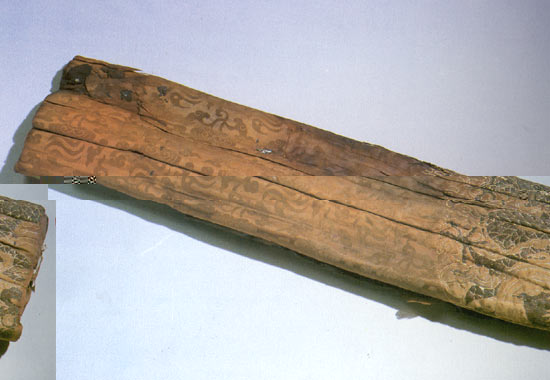 在出土的文物中,最为引人注目的是644件帝后冠服织品。该丝织品主要出自万历帝及孝端、孝靖两位皇后棺内,少数置于椁上,其中成卷的匹料和袍料就有177匹,其花se<北京zheengffuu机房敏感词屏蔽>se<北京zheengffuu机房敏感词屏蔽>se品种齐全,有锦、绫、罗、缎、纱、绸、绢、绒、改机、缂丝、刺绣11大类,是定陵出土器物中的首宝。从用途来看,除匹料外,还有很大一批龙袍袍料,主要有柿蒂形的龙云肩通袖龙襕直身袍料,也有四团龙、八团龙补的交领龙袍料及前后方补的圆领龙袍料。定陵出土的成件衣物类文物共计467件,其中服饰385件,被褥34件,用品48件。出土的帝后服饰主要有:衮服5件、龙袍67件、折褶袍1件、大袖衬道袍8件、中单40件、裳1件、蔽膝2件、女衣134件、裤11件、裙47条、童衣3件、大带、绶各7件、鞋19双、靴5双、云履毡袜2双、膝袜20双、袜141双、卫生巾1件等。