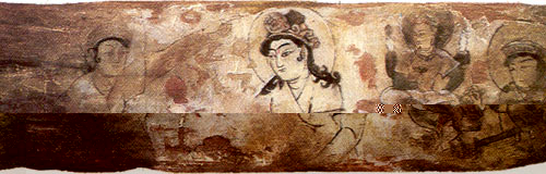 有趣的是,上世纪英国探险家斯坦因在中国新疆境内进行考古盗掘时,还在和阗(今新疆和田地区)附近的丹丹乌里克遗址中发现了一块“传丝公主”画版。在这块画版上有一位头戴王冠的公主,旁边有一侍女手指公主的帽子,似乎在暗示帽中藏着蚕种的秘密。由于这位中国公主对当地人民有功,人们为了纪念她,就把她画在了木版上作永久纪念。